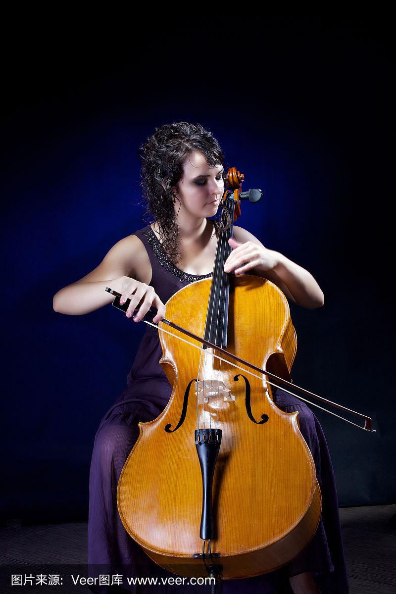 一个女孩在拉大提琴的肖像照片-正版商用图片1n2l07-摄图新视界