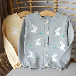 韩版童装秋冬毛衣女童宝宝针织开衫棉线中小童小兔子圆领打底外套