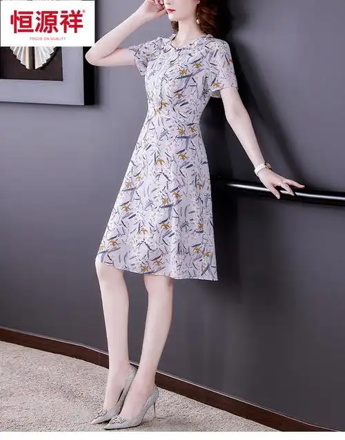 恒源祥旗舰款30一40岁碎花雪纺连衣裙夏季新款中年小个子妈妈50显年轻