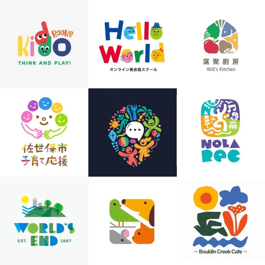 多元素组合成整体化的logo符号,这类设计辨识度高,色彩搭配组合,运用