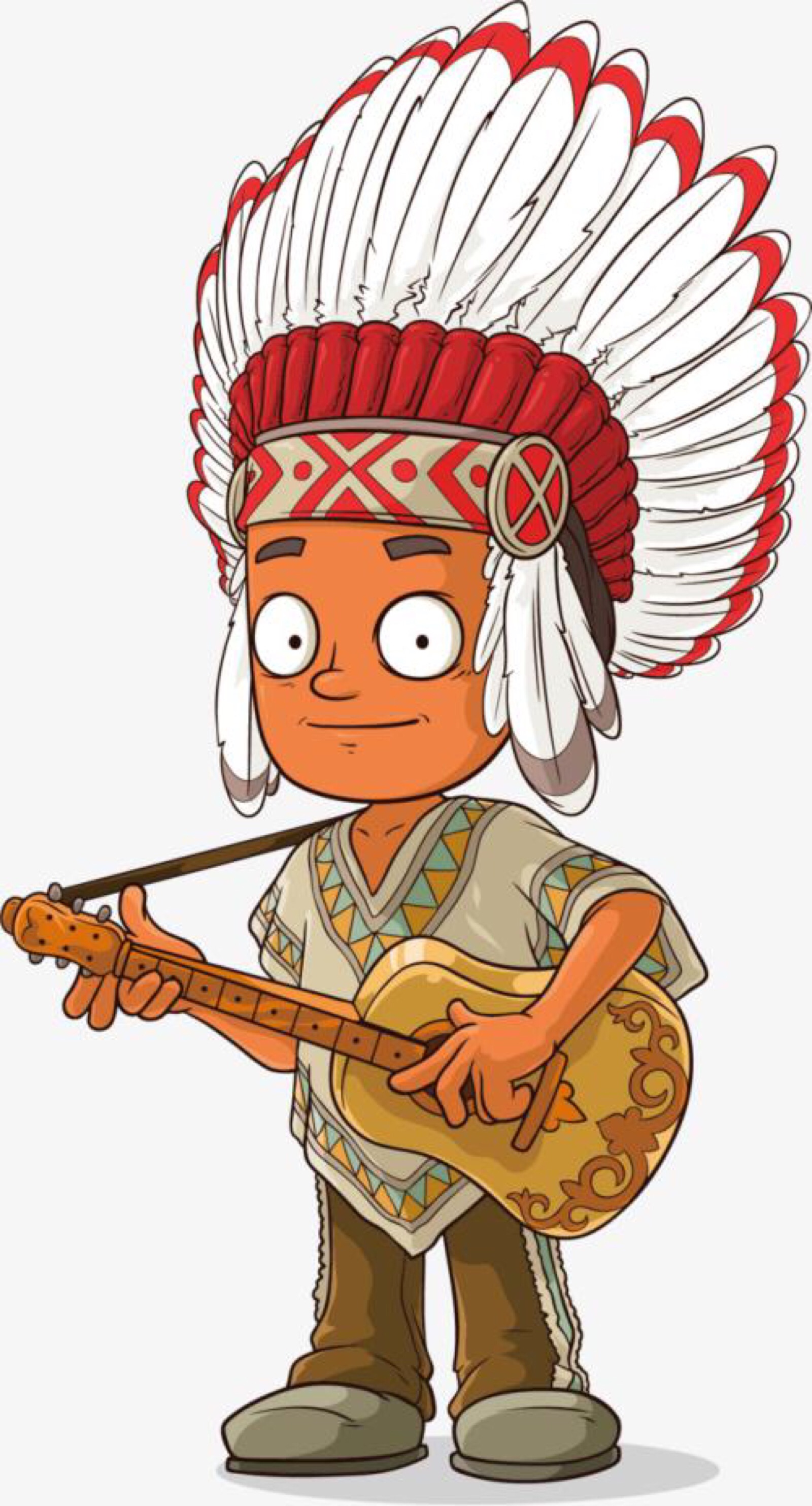 卡通印第安人与传统服饰头饰