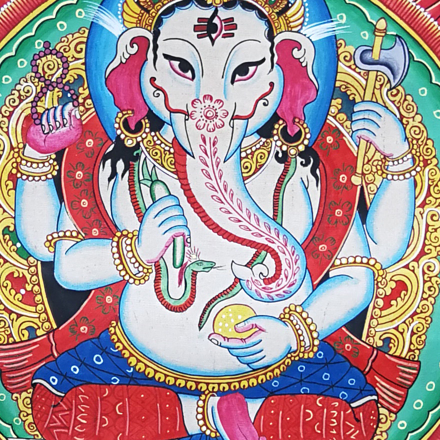 油画 《纽瓦丽象神唐卡》尺寸30x40cm,此幅唐卡为尼泊尔著名纽瓦丽