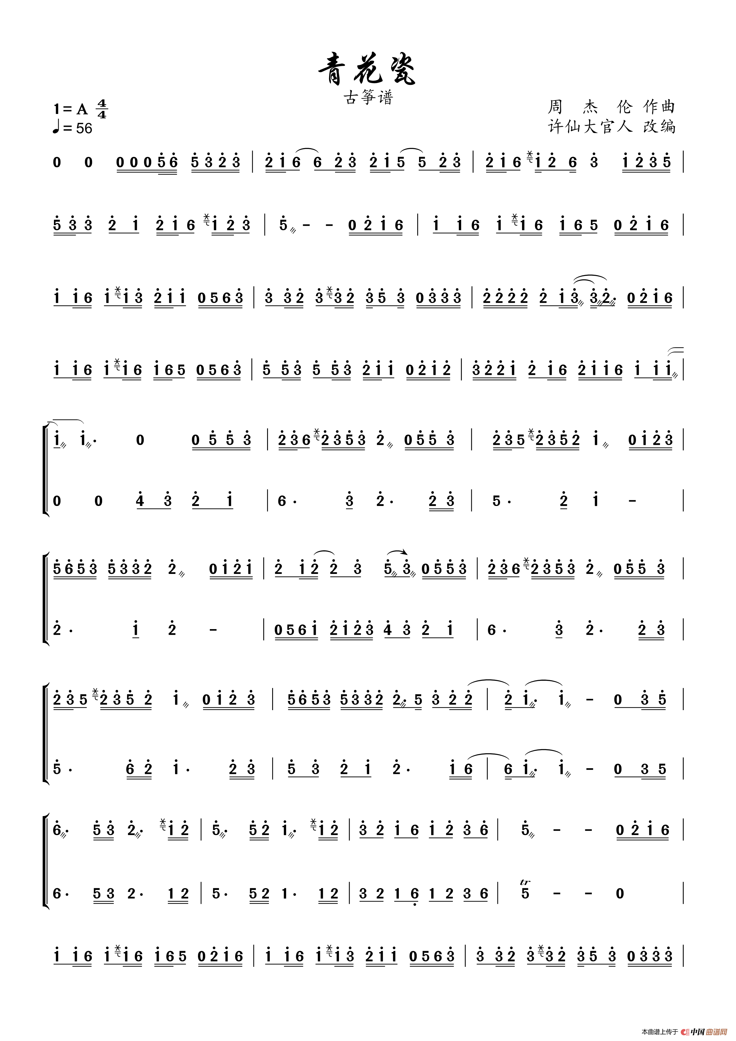 青花瓷古筝谱-佚名青花瓷古筝谱-青花瓷古筝曲谱-中国古筝网