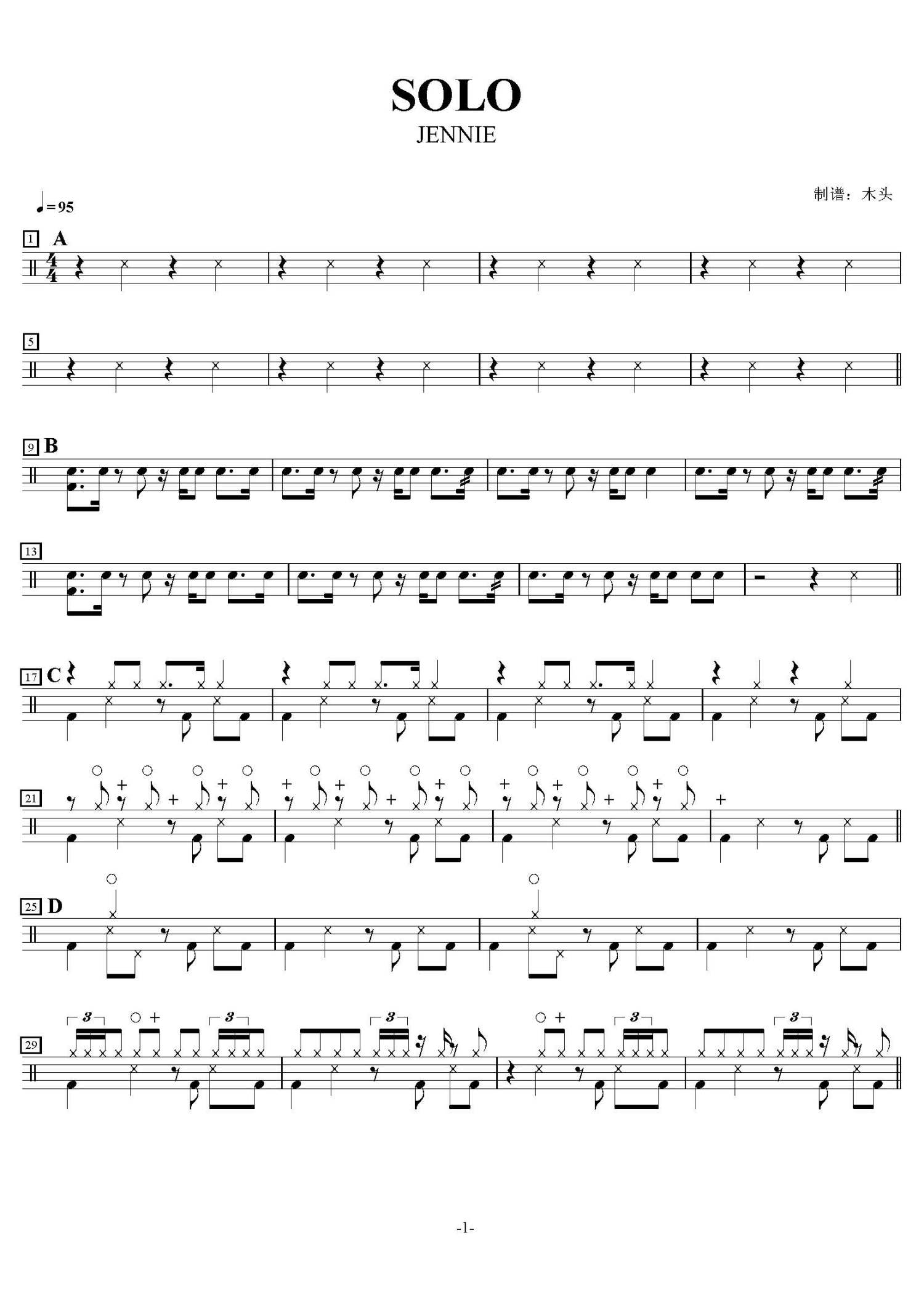 jennie-solo 改编 简易谱子 真不会写谱,只有一个简易版的希望大家能