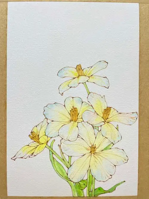 钢笔淡彩花卉
