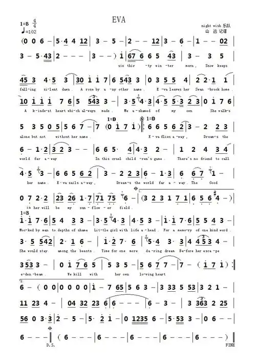while your lips are still red-lieksa主题曲-nightwish双手简谱预览