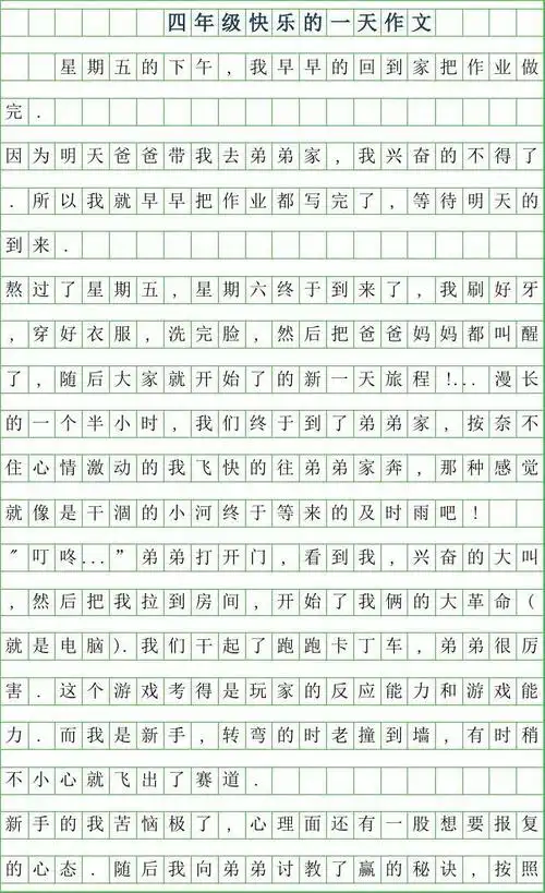 2019年四年级快乐的一天作文300字