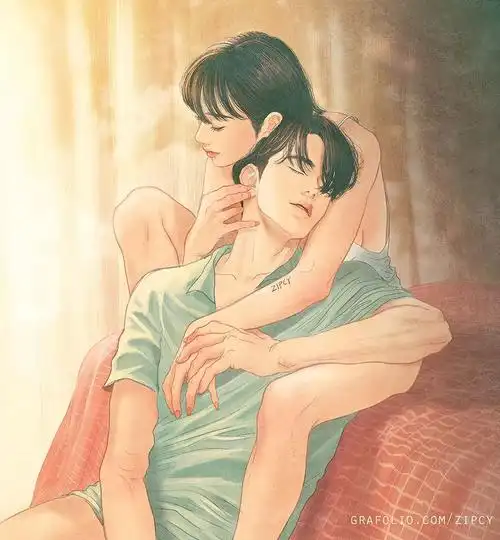 甜蜜小情侣手绘插画手机壁纸