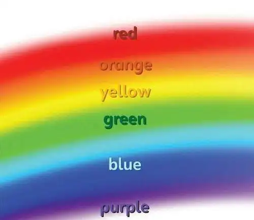 彩虹是由七种颜色组成的,分别 是:红,橙,黄,绿,青,蓝,紫