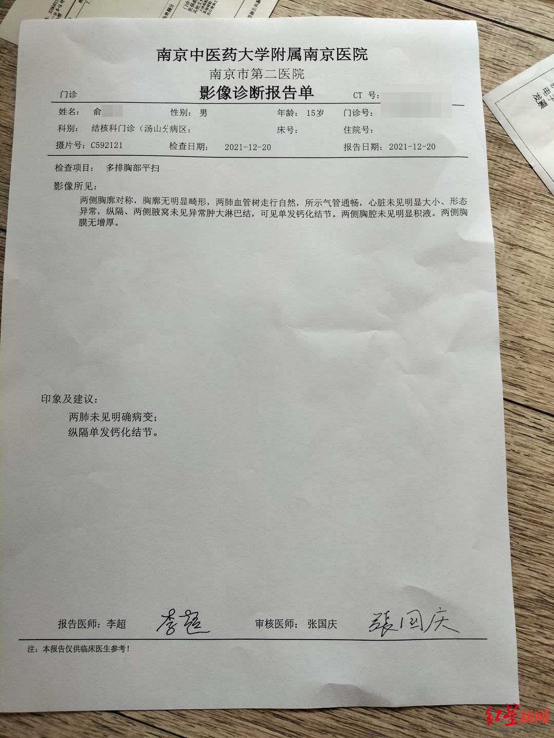 南京市一中学学生肺结核检测呈阳性教育局将督促学校处理