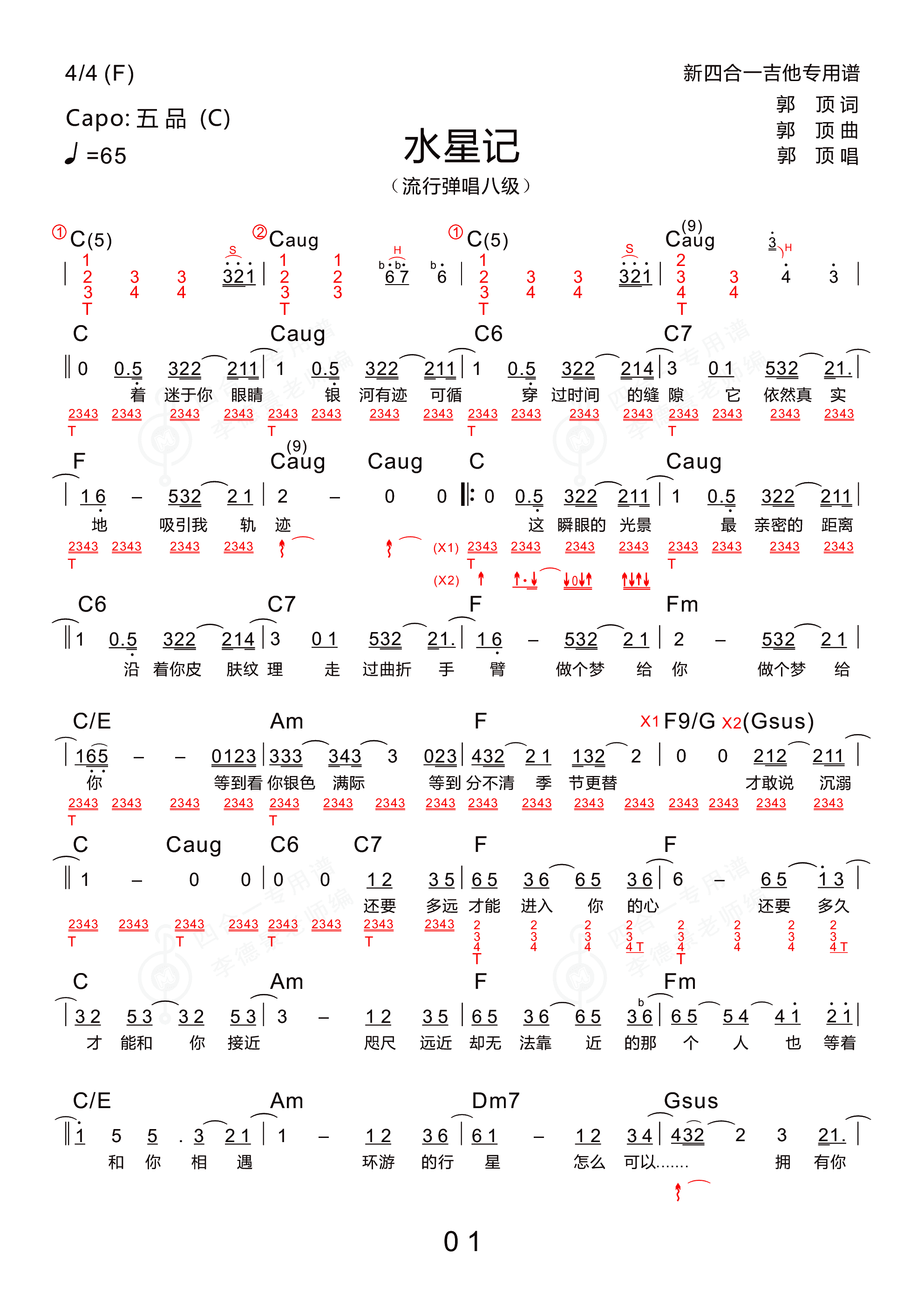 郭顶 水星记 吉他谱 c调指法 无限延音编配c调六线pdf谱吉他谱-虫虫