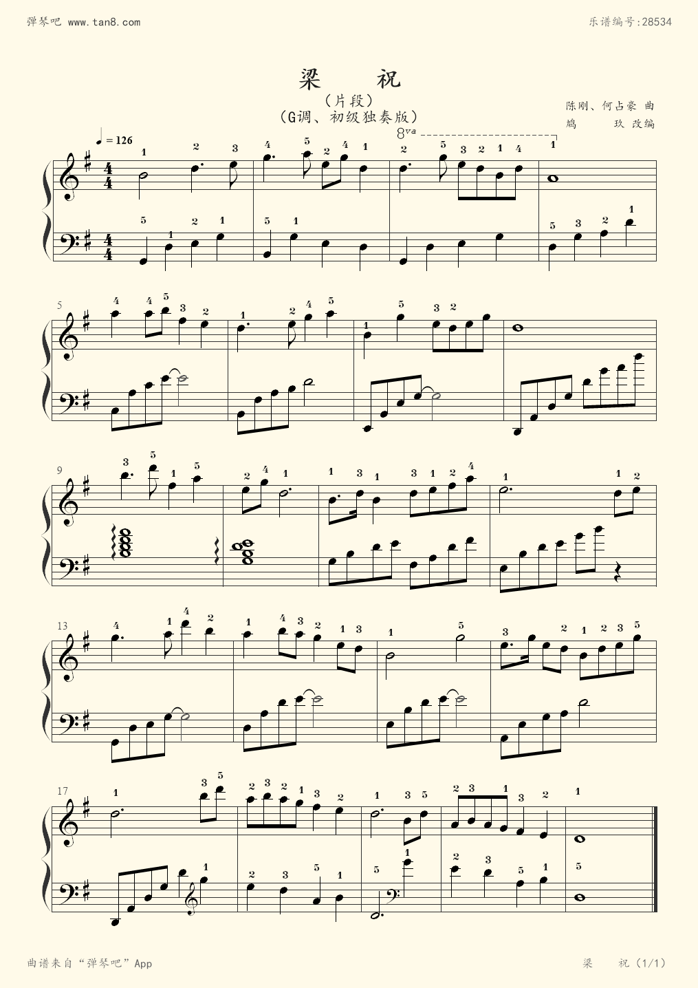 梁祝- 钢琴谱 乐谱 五线谱 高清4页 送示范音频