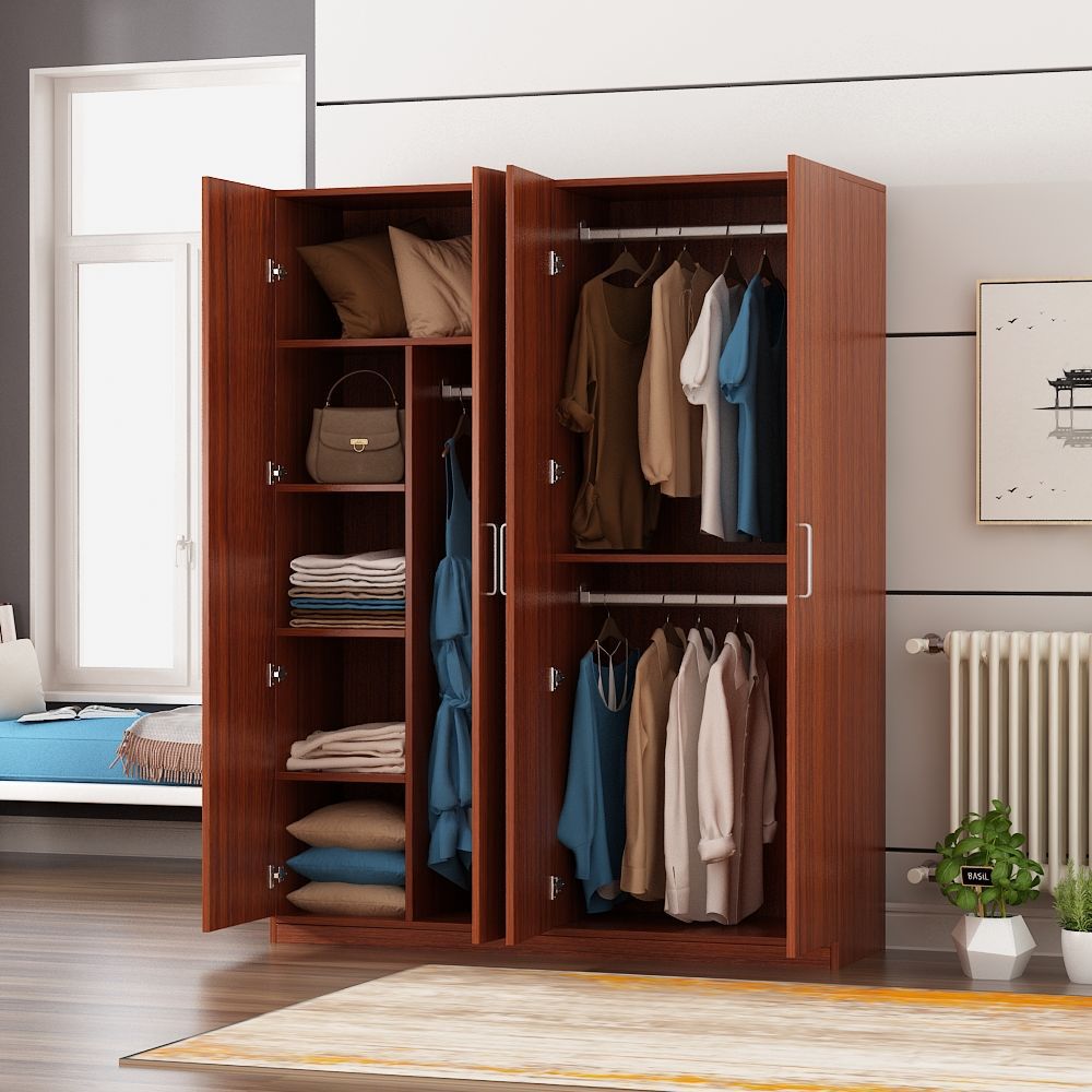衣柜家用卧室现代简约经济型房用简易衣橱小户型储物柜子浅胡桃色四门