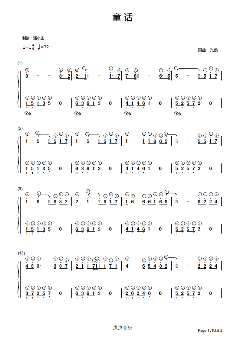 光良童话钢琴谱双手数字简谱.pdf