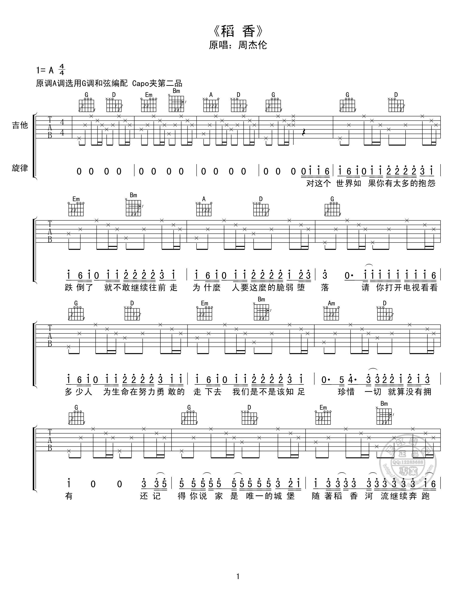稻香a调六线pdf谱吉他谱-虫虫吉他谱免费下载
