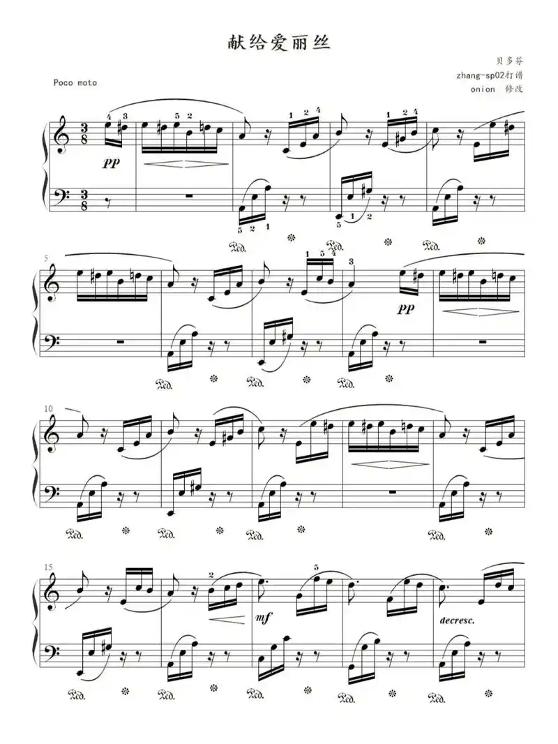 《献给爱丽丝》#钢琴谱|||有想要的曲谱进91优先分享哦#五 - 抖音