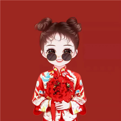 红衣新郎新娘带墨镜的情侣头像卡通点击鼠标右键下载