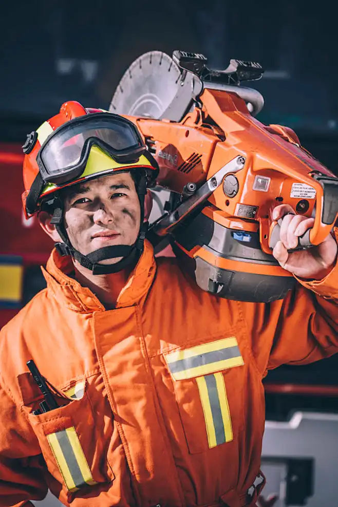 在单位的消防应急演练中,抓拍了几张消防队员的人物像