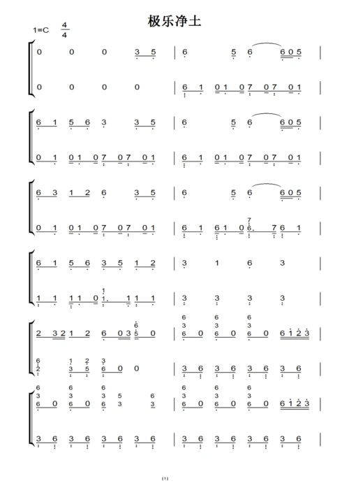 极乐净土-合音版双手简谱预览1
