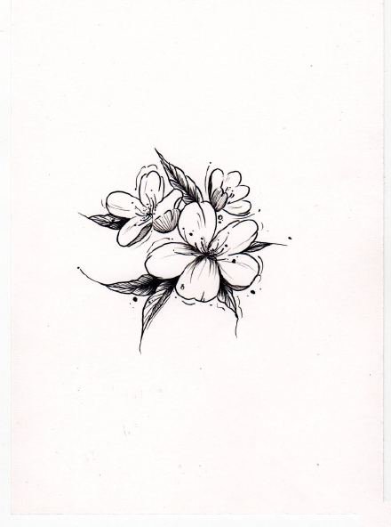 桃花小清新纹身图案手稿