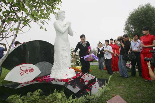 七夕节高秀敏女儿祭拜母亲高秀敏墓地宽敞豪华