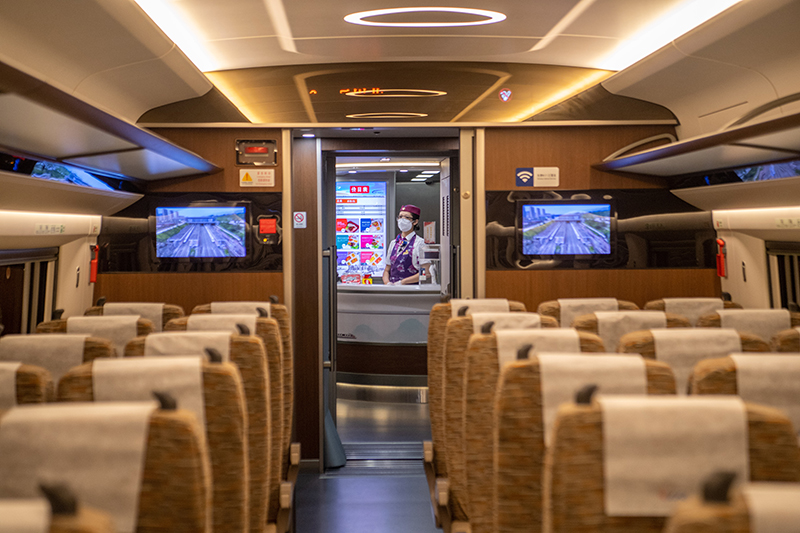多种设施参照复兴号高铁标准进行设计,列车座椅席位间距加大,车厢内