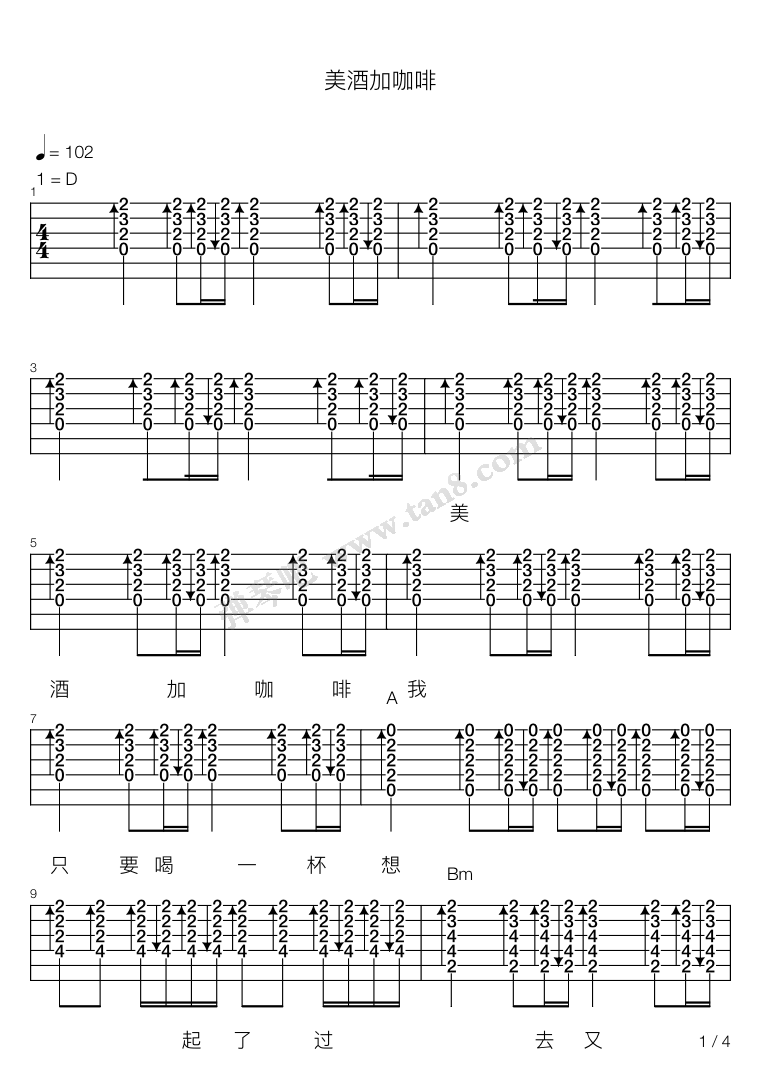 美酒加咖啡吉他谱_邓丽君_c调指弹 - 吉他世界