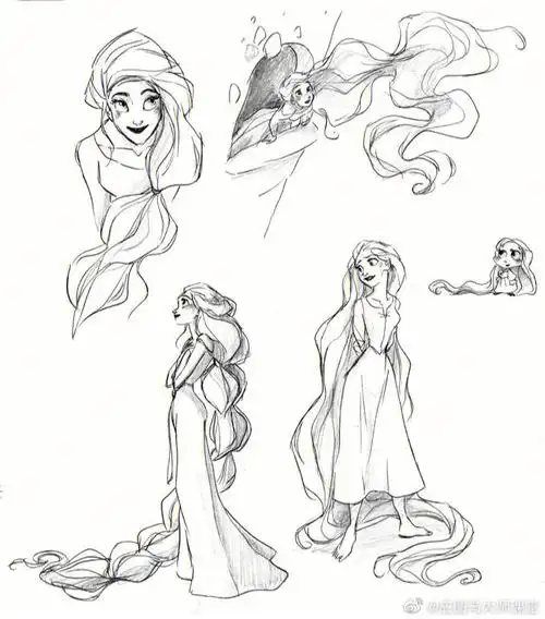 迪士尼长发公主原画手稿转载分享