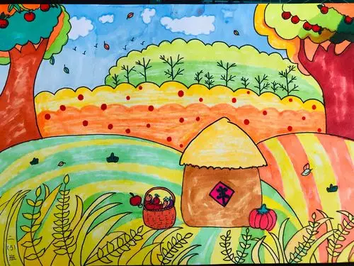 秋天秋天主题画秋天儿童画秋收