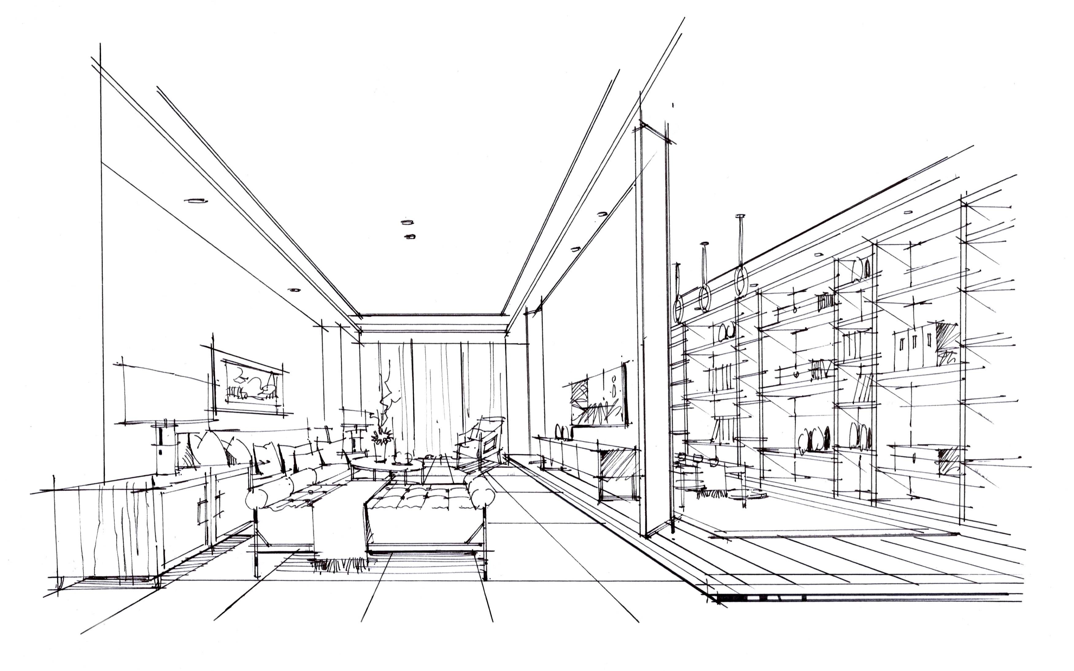 室内手绘客厅线稿草图表达