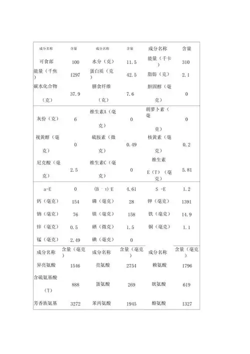 玉米营养成分表(每100g含量)据报道,美国白宫营养师给美国总统奥巴马