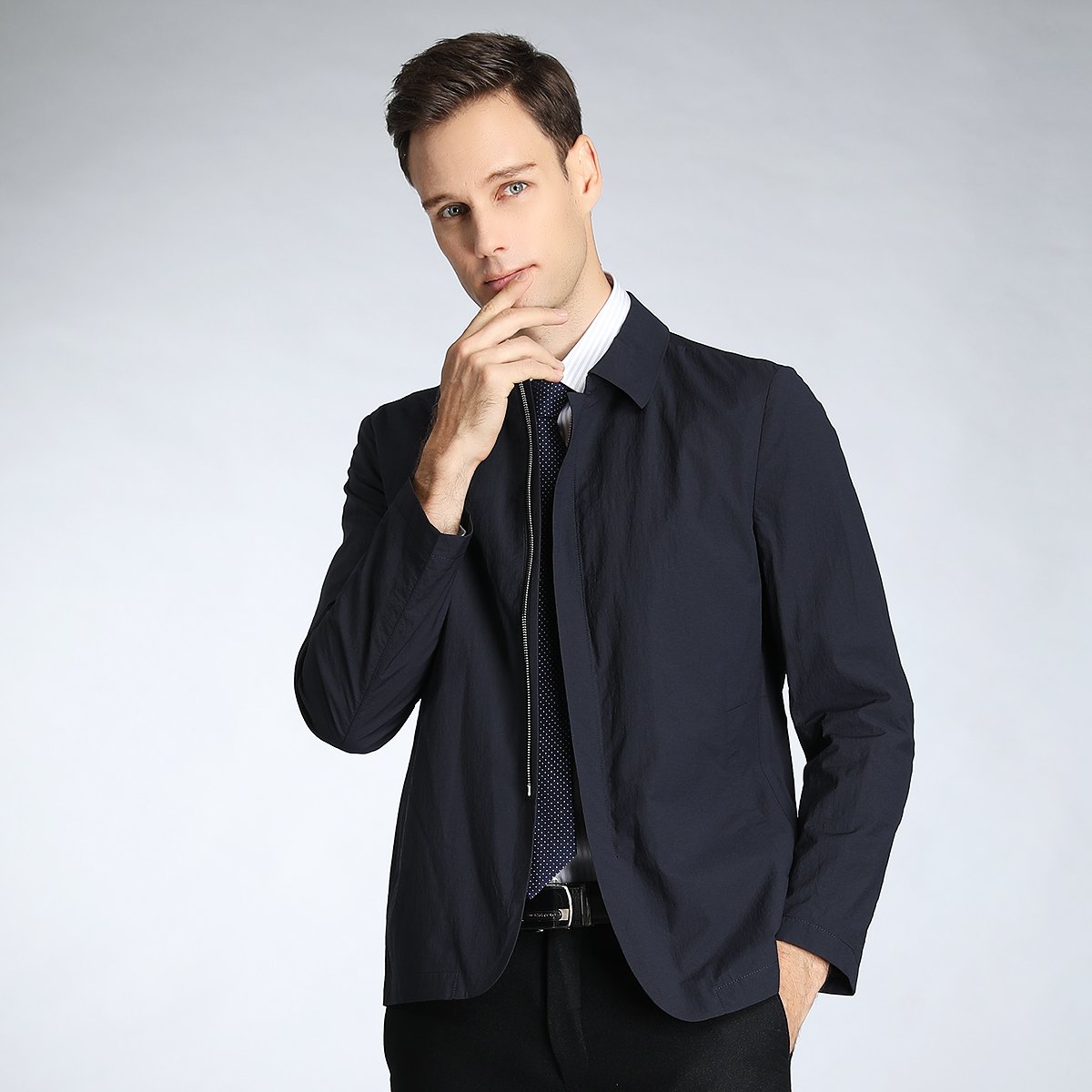 杰凡尼纯色舒适粒点装饰商务休闲立领便装男士外套