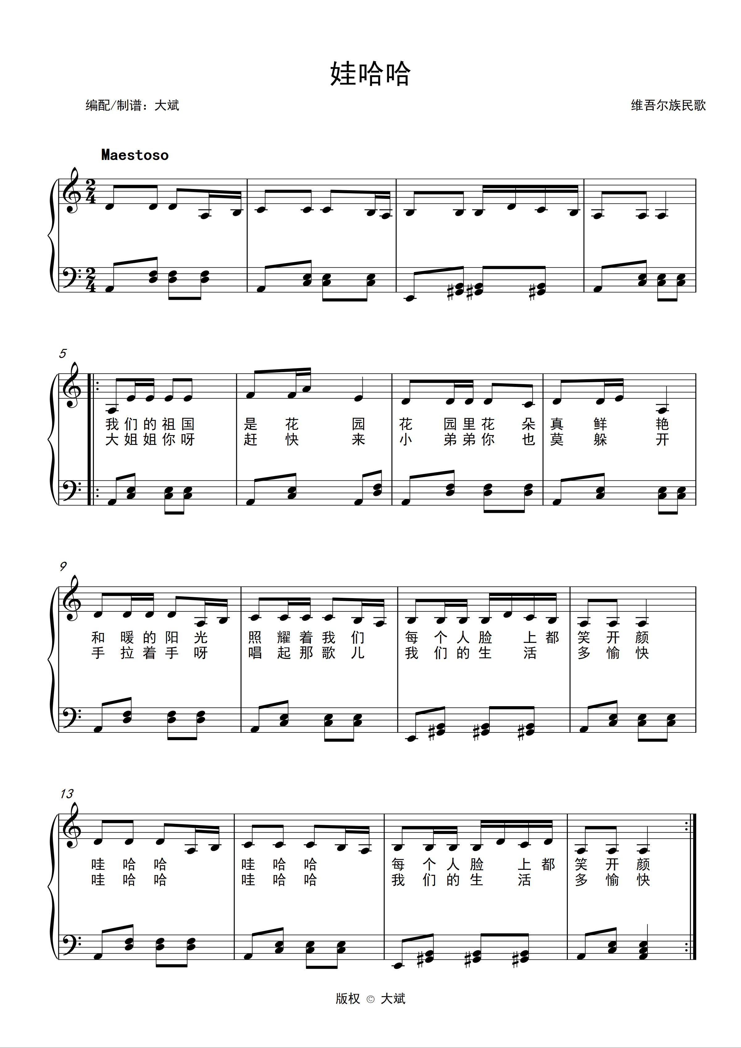儿歌钢琴弹唱简谱 双手钢琴简谱