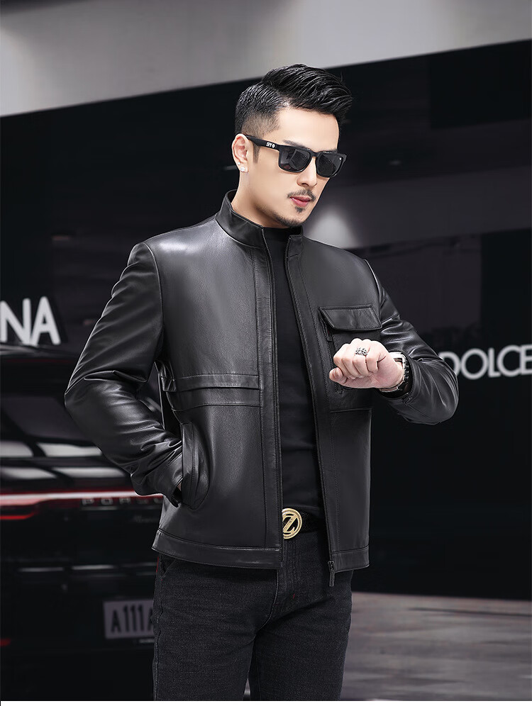 smgeorge轻奢侈品牌海宁真皮皮衣男士头层牛皮休闲商务立领修身皮夹克