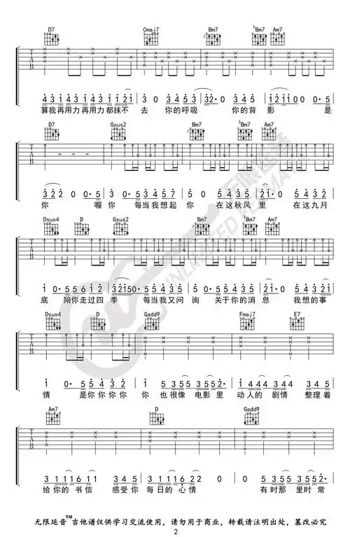 九月底吉他谱_余佳运_g调弹唱56%原版 - 吉他世界