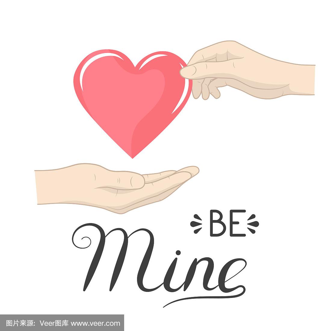 你是我心中金灿灿的字,红红的底色上带着一颗心.情人节贺卡模板.