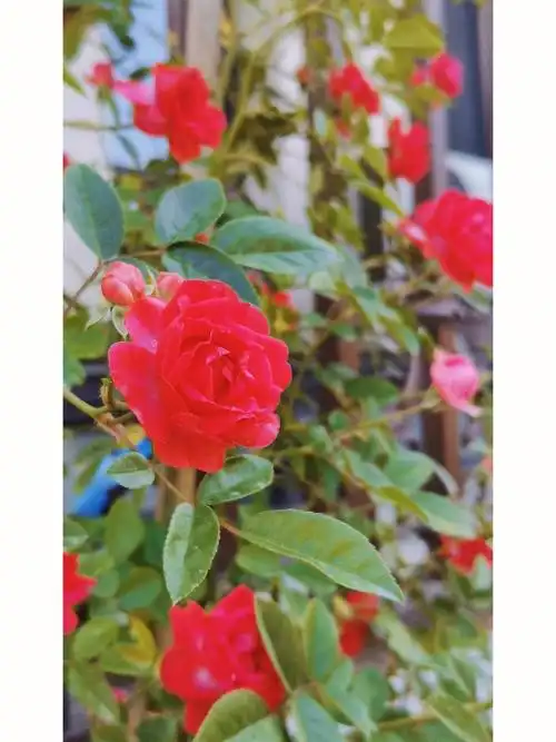 红色的蔷薇花颜色很鲜艳,像是红玫瑰一样,花语是热恋.