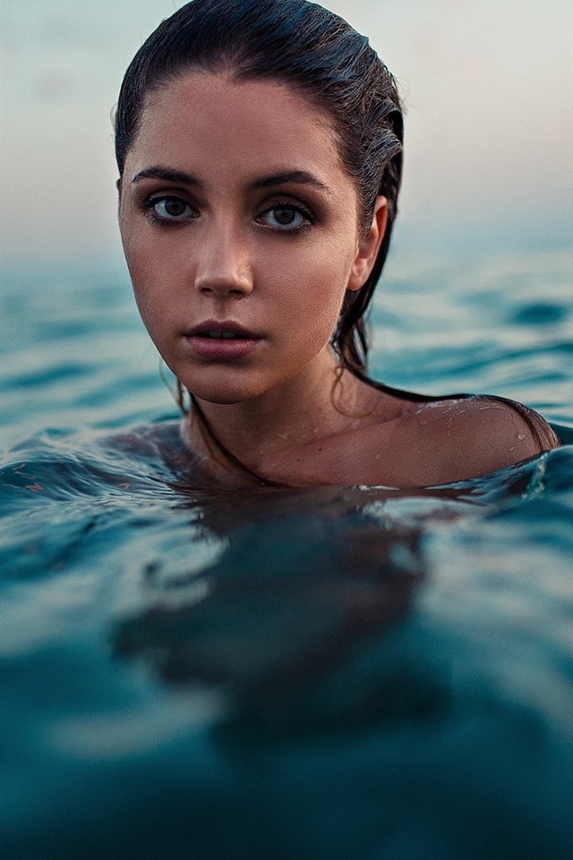01874_人物素材设计高清拍摄美女在水中游泳阳光洒在女孩身上显示出