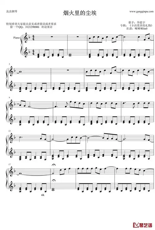 国王与乞丐钢琴谱-华晨宇1
