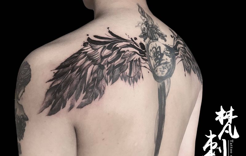 水墨翅膀纹身图片_背部纹身图案(2)_云南省玉溪市纹身店-梵刺纹身工作