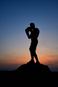 肌肉男剪影在落日的天空摄影图