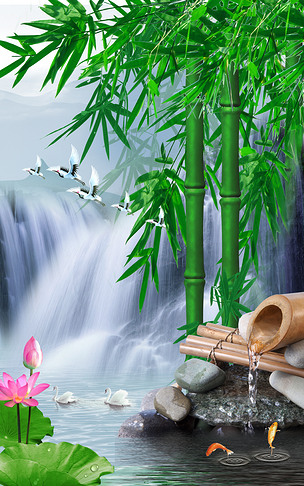 竹林山水流水成才背景墙图片