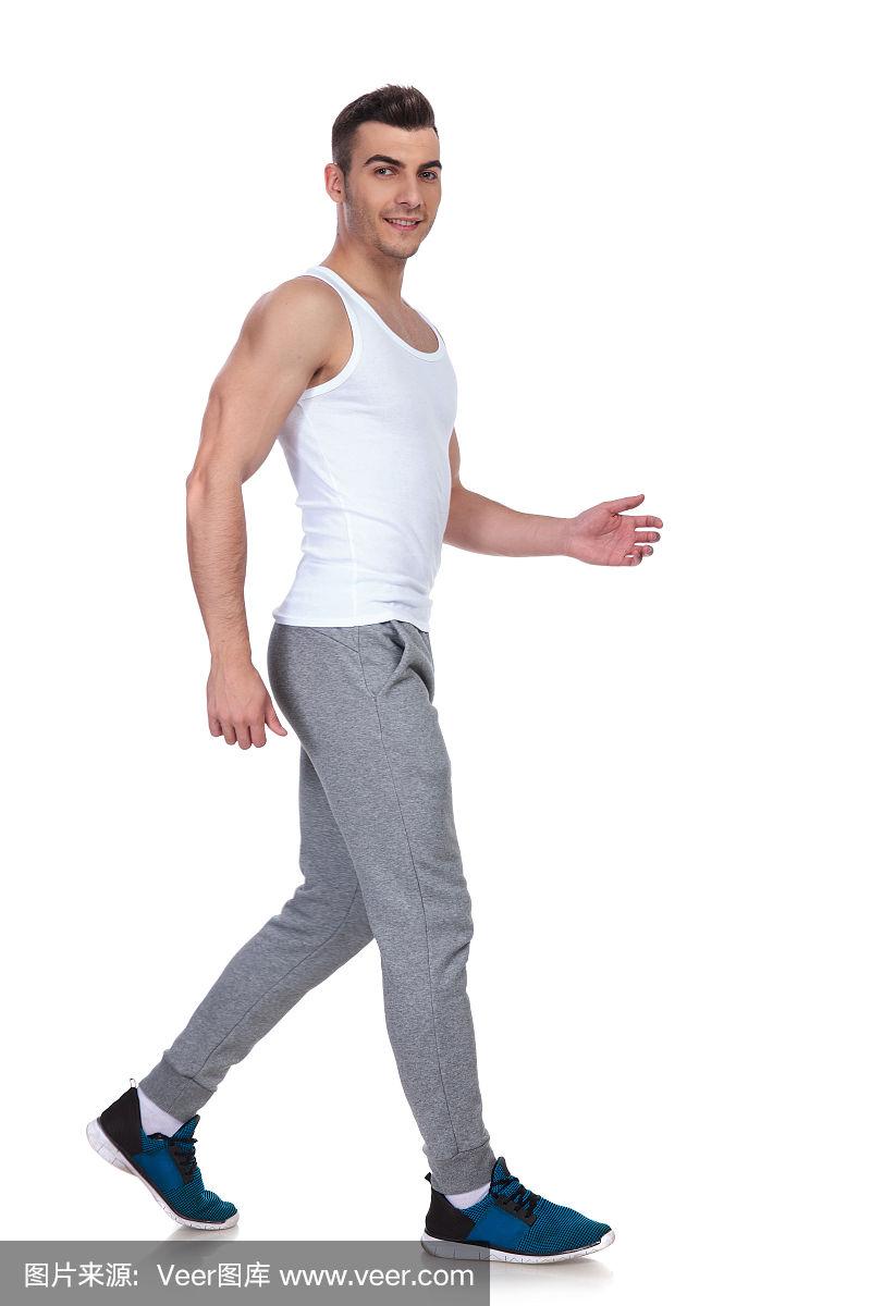 一个肌肉男的侧视图