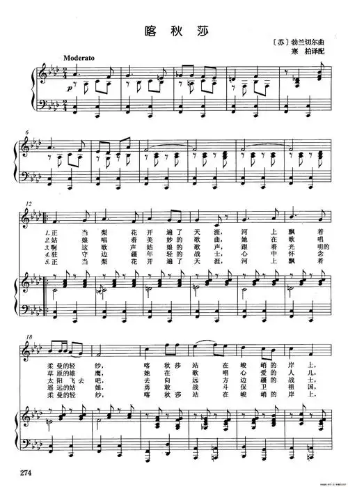 《喀秋莎》,马特维·勃兰切尔(五线谱 电子琴谱)-弹琴吧(原蛐蛐钢琴网