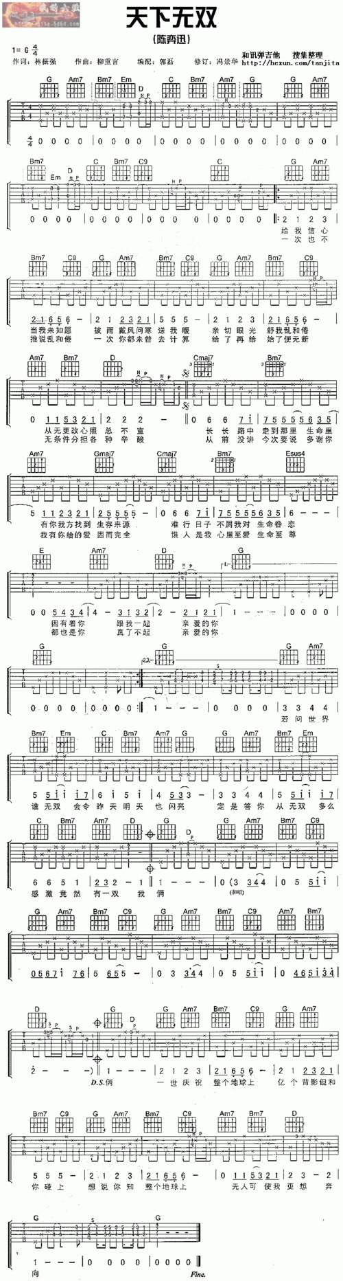 天下无双_歌谱简谱_哆来咪123曲谱网