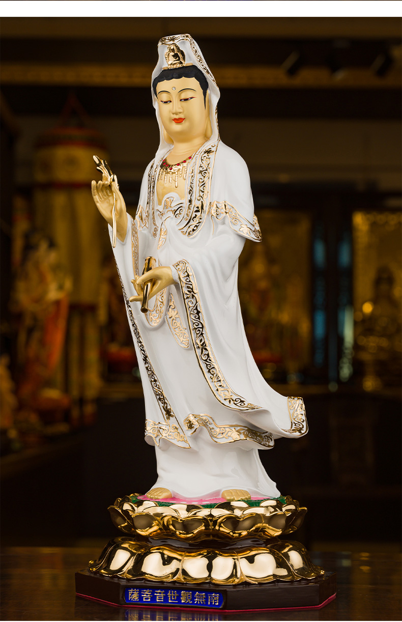 观音佛像居家供奉家用南海白衣观世音菩萨客厅神像树脂汉白玉摆件