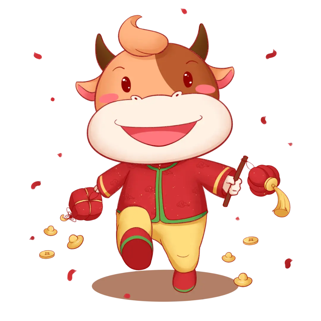 2021年牛年卡通小牛拿着金元宝牛年大吉443201png图片素材