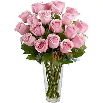 爱尚 家庭鲜切花插花玛利亚粉玫瑰18朵鲜花速递家用办公室鲜花