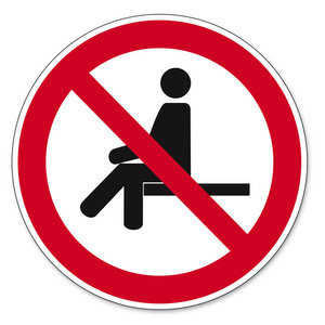 带红色圆圈的信号和一个程式化的人表示不可能坐下照片