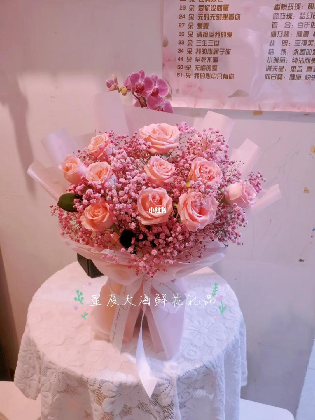 送给心里的唯一93花语:满天星辰不及你78 #满天星花束 #粉色